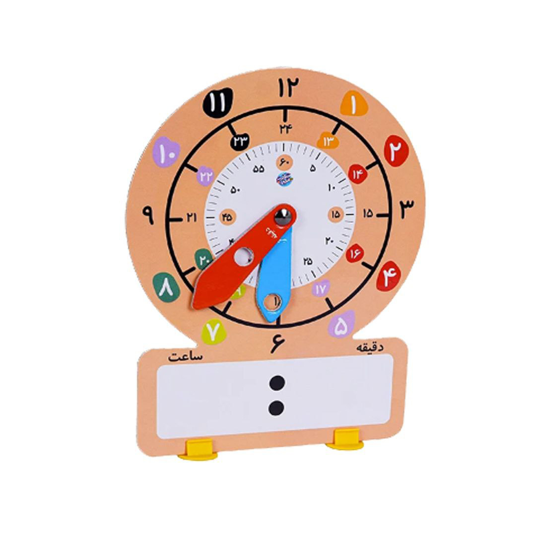 🟣این بازی شامل یک ساعت آموزشی با عقربههای متحرک و یک صفحه وایتبرد است که کودک میتواند روی آن بنویسد و تمرین کند. بازی به صورت تعاملی طراحی شده و کودک با چرخاندن عقربهها و نوشتن ساعت روی وایتبرد، یادگیری را به صورت عملی تجربه میکند.